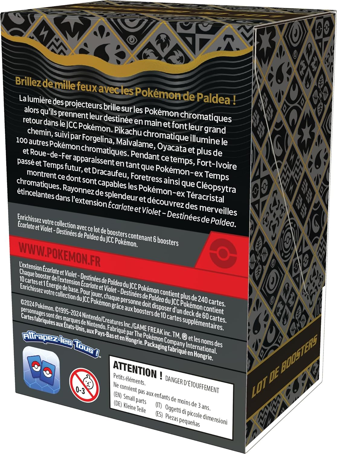 - Contient 6 boosters Écarlate et Violet – Destinées de Paldea du JCC Pokémon pour enrichir votre collection.